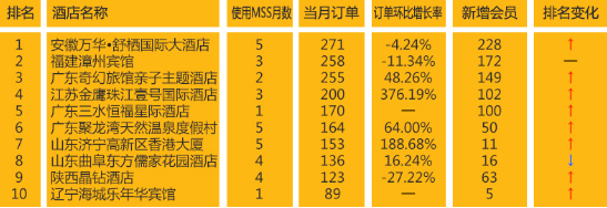 注:新秀酒店是指使用MSS系統6個月內的酒店,排名依據為當月訂單量